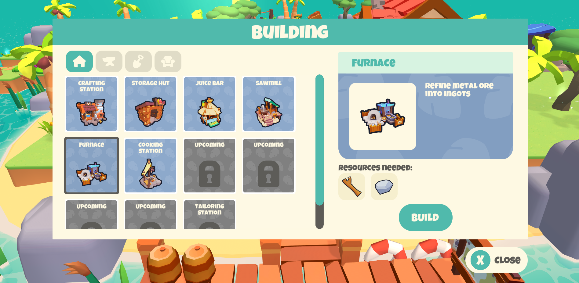 Production buildings like *Storage Hut, Juice Bar or Saw Mill* play a crucial role in boosting production, adding storage space for resources and refining resources. Most of these buildings can also be upgraded to enhance their functionality. For example, upgraded storage provides more space, a Juice Bar unlocks more potent consumables, and a Saw Mill allows for crafting more refined materials.